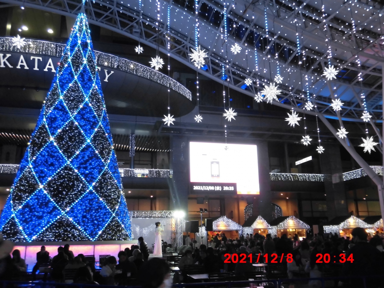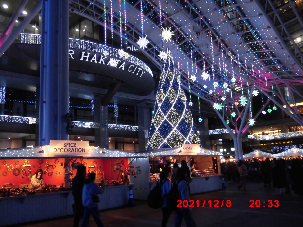 福岡市観光で立ち寄りました。JR博多シティ イルミネーションは、JR博多駅前の広い敷地を利用して巨大なイルミネーションを展開してました。巨大なスクリーンもあり、福岡市がクリスマスイルミネーションに力を入れていることを感じます。クリスマスマーケットも開催していて目でも舌でも楽しめるイベントでした。