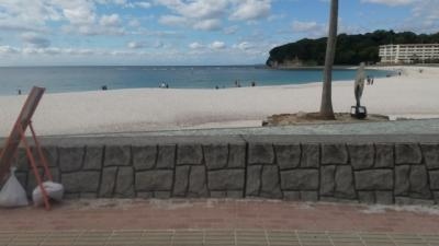こちらは時間がなくて、路線バスの中で車窓観光。弓状のの浜で、砂は白い砂浜。