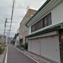 丸亀のアーケード商店街の南北に走るメインストリート、通町商店街と直角に交差する商店街です。起点は通町商店街の中ほどにある「スーパーホテル」の駐車場北側にある三差路。ここから東方向に伸びる通りが松屋町商店街です。かつてはアーケードがかけられていたようですが、今はなし。そして商店街の名残りもほぼありません。ただの裏通りです。散策する価値はないと思いますが、途中にちょっと逸れますが寳月堂(ほうげつどう)という和菓子屋さんがあります。ここいいです。ぜひ立ち寄ってみて下さい。