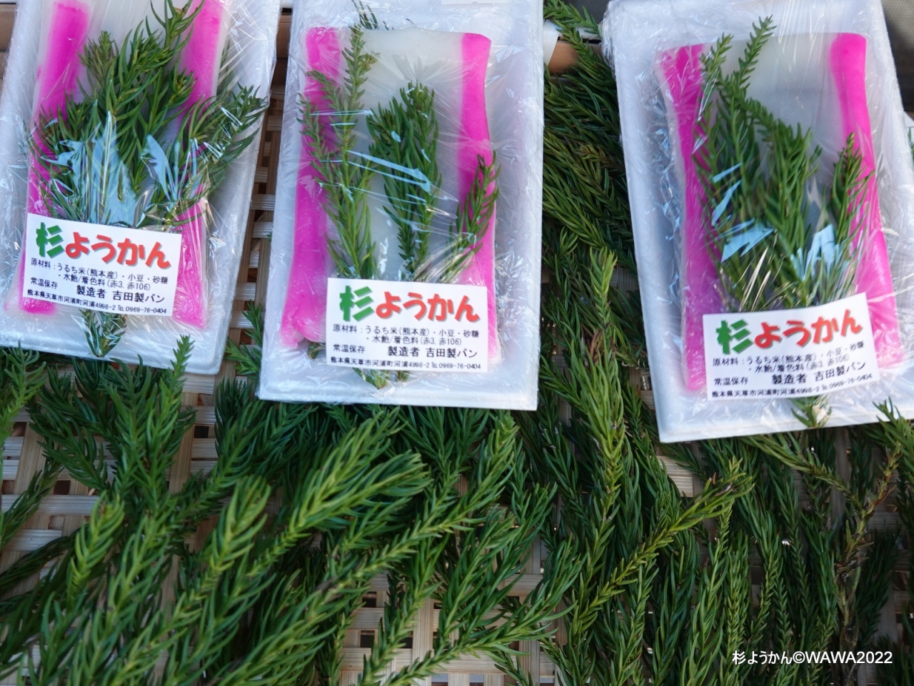 駐車場の目の前にある宮下商店では、「1790年、海難事故に遭った琉球王朝の使節を助けたお礼に製造方法を伝授された」という素敵な謂れが伝わる「杉ようかん」を頂きました。