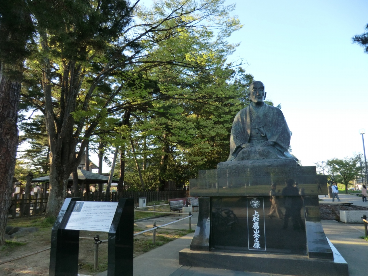 崩壊寸前の米沢藩を復興させた江戸時代随一の名君として知られる米沢藩第9代藩主の上杉鷹山の銅像です。
