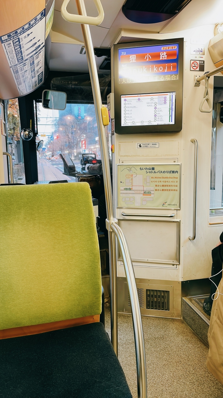 札幌で狸小路やすすきの、大通り4丁目を歩くとみることができる循環している便利な乗り物です。