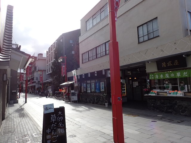 関東三大厄除スポットの一つ、西新井大師の門前にある商店街です。西新井大師名物である草だんごを売る店や、庶民的な食堂、日用品を売る店など、西新井大師の参道に店舗が並んでいました。東武鉄道の大師駅前から歩いてすぐです。