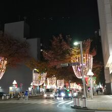 広いので場所ごとに印象は違うでしょうが、マルエイギャレリアの近くでは道の装飾はそんなに目立つ感じでもなく、むしろギャレリアのイルミネーションのほうが目立ってました。