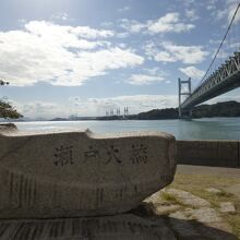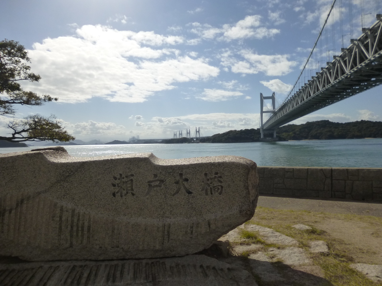 倉敷から高松へ向かう途中瀬戸大橋を渡りました。渡り始める前に、下津井漁港に近い田戸浦公園へ立ち寄りました。ここは瀬戸大橋を真下から眺められる場所です。高いところからの瀬戸内海の島々を結ぶ美しい姿も良いですが、橋を支える橋脚を見て大工事のことを思いながら橋を眺めるの良いと思います。