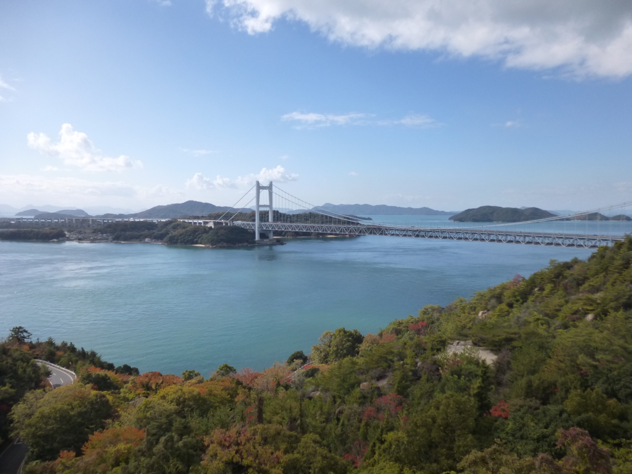 楽しみにしていた鷲羽山からの風景。倉敷から高松へ瀬戸大橋を渡る前に立ち寄りました。お天気にも恵まれ、期待以上の風景を見ることができました。青い瀬戸内海に浮かぶ緑の多くの島々とまっすぐに伸びる白い瀬戸大橋。とても印象的な風景でした。駐車場もおおく、瀬戸大橋付近の展望台の中でも行きやすい方の場所だと思います。