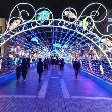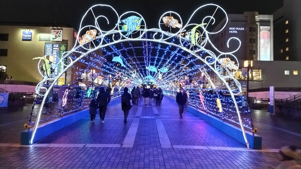 多摩センター駅からパルテノンまでの道は、時期によってはイルミネーションが開催されていて、道沿いは多くの人で賑わう。多摩センターにピューロランドがある関係で、サンリオのキャラクターのイルミネーションがあるので、オススメしたい。