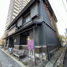 多くの歴史的建造物が建ち並ぶ色内大通りにあっても、黒塗りで目立つ存在でした。看板は「後藤商店」と掲げられています。 防火のために、外壁をコンクリートで塗り固め、出入り口や窓を防火戸で覆う工夫が施されているのが特徴だそうです。現在は、和菓子店や蕎麦店が入っていました。