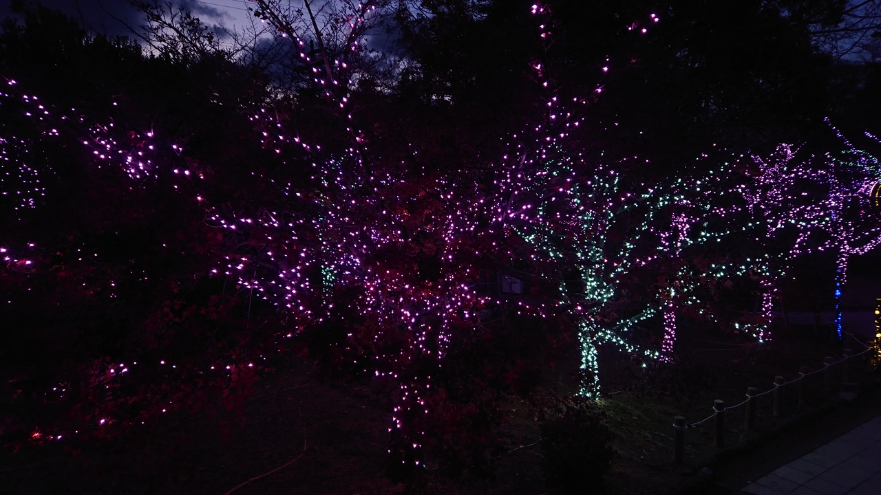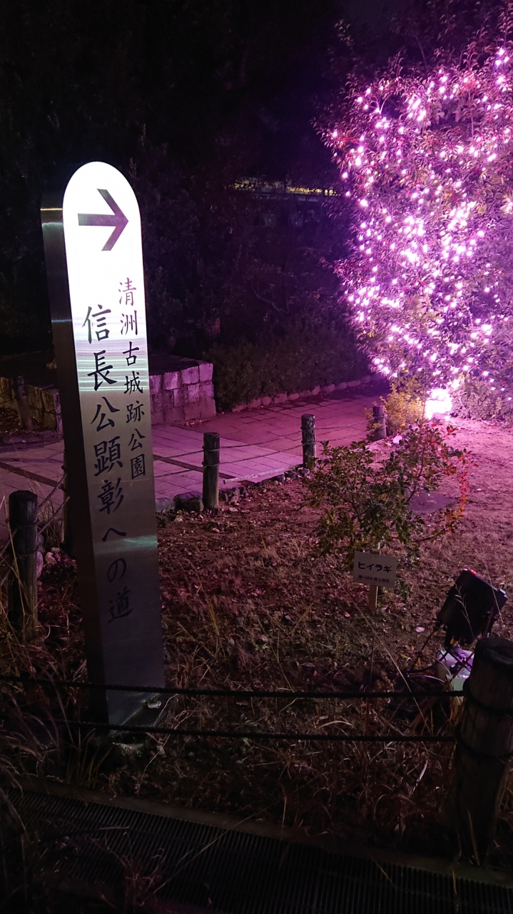 12月中旬の平日の午後5時台に訪問しました。訪問当日、清洲古城跡公園は、「清洲イルミ2022」の会場となっていました。それゆえ、多数の電球を用いたイルミネーションや、プロジェクションマッピングが、公園内に施されていました。そして、それは、とても綺麗でした。
