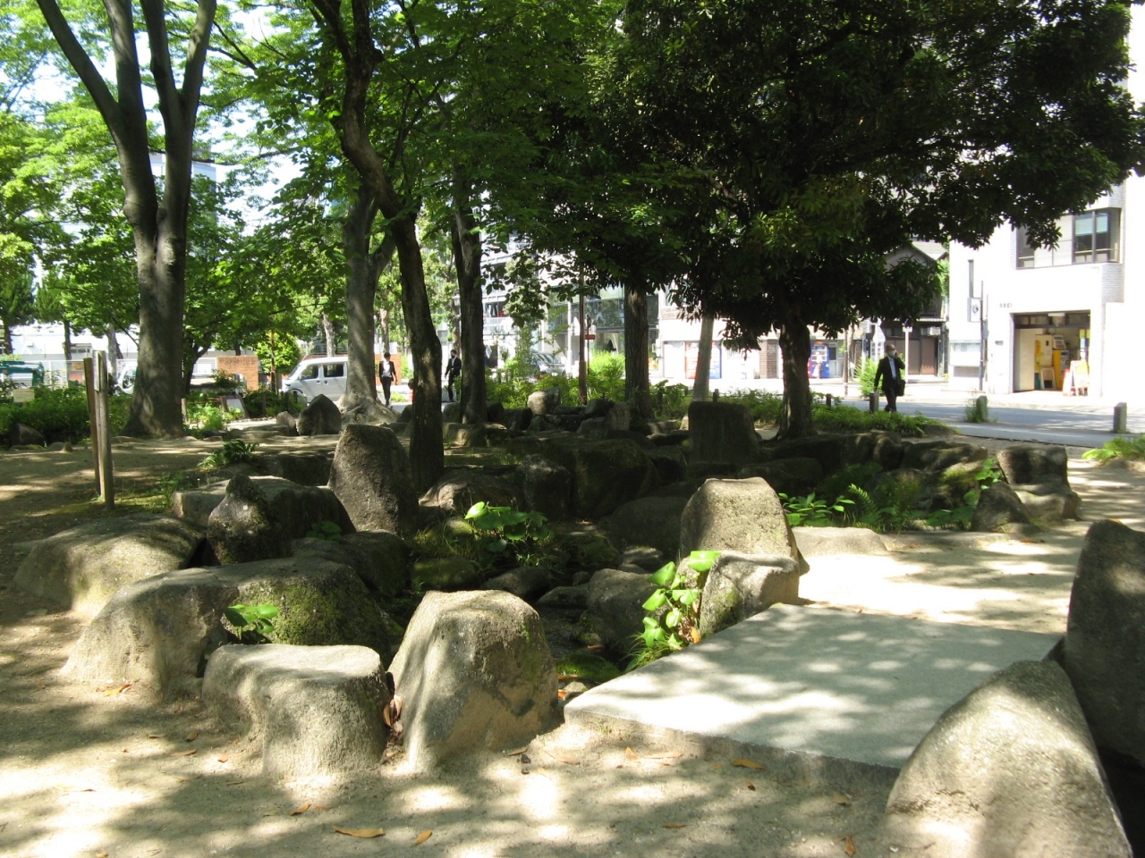 地下鉄の伏見駅から西に歩いて直ぐのところにあります。大きな木が茂り、泉水もあって都会のオアシスと言う様な感じのところで東屋やベンチでたくさんの人々が寛いでいました。特別な観光スポットと言う様なところではありませんが、街歩きで疲れた時の休憩場所としてオススメです。