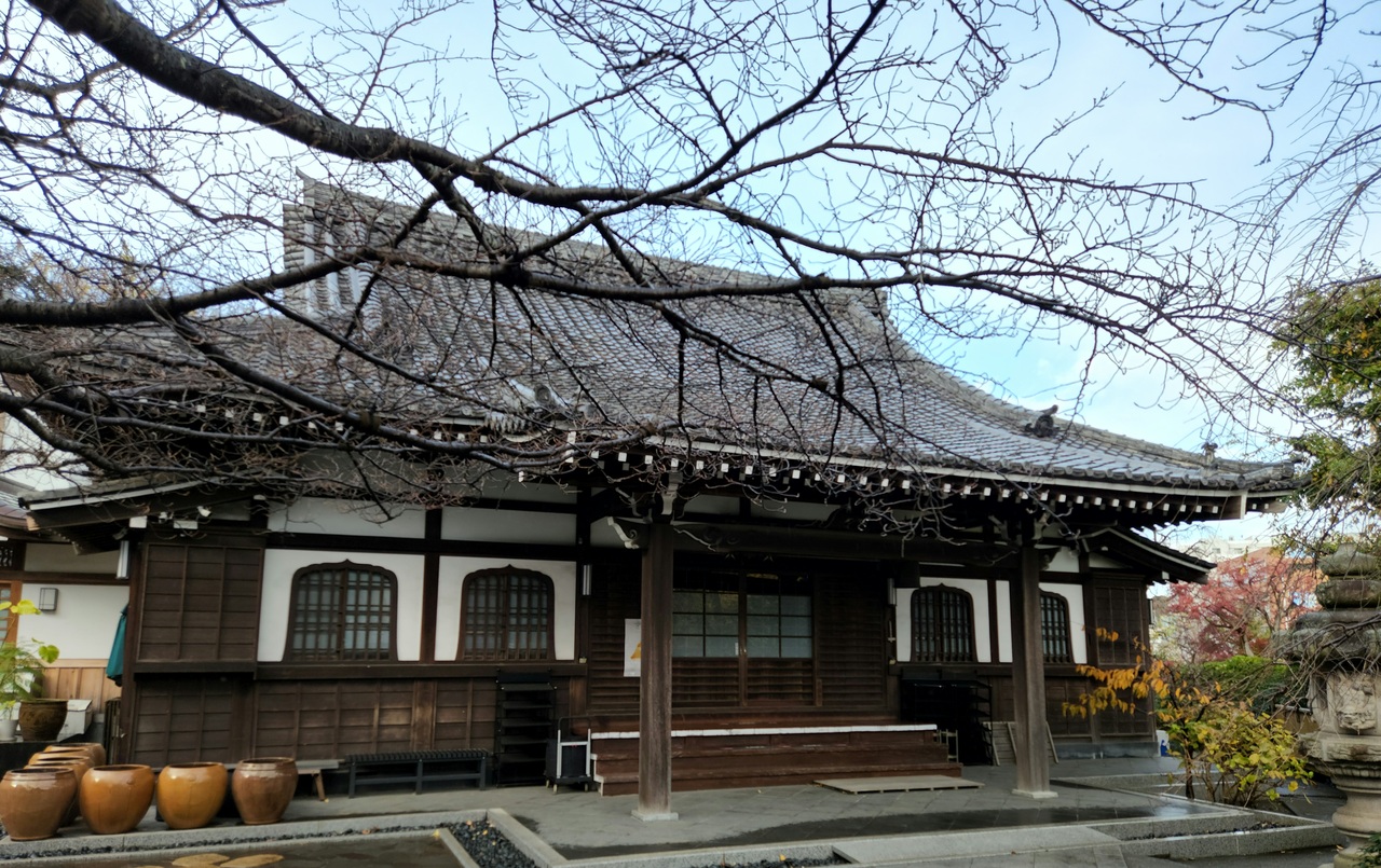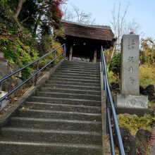 石段を上ると山門、くぐるとすぐ目の前に大きな桜の木の枝がありました、こちらは春は桜・夏は紫陽花、蓮花、秋は白彼岸花の花のお寺なんだそうです(私たちが行った時は冬だったのでちょっと寂しい感じでしたが^^;)