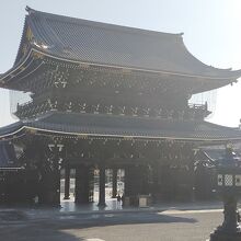 京都観光で行ってきました。京都駅から烏丸御池に向かう際にあったので、入ってみました。京都駅から見えるぐらい近いので、京都駅に行かれる方にはおすすめのスポットです。巨大な木造の門や本堂がすばらしいです。今も檀家さんがいる利用されているお寺なのも素晴らしいです。
