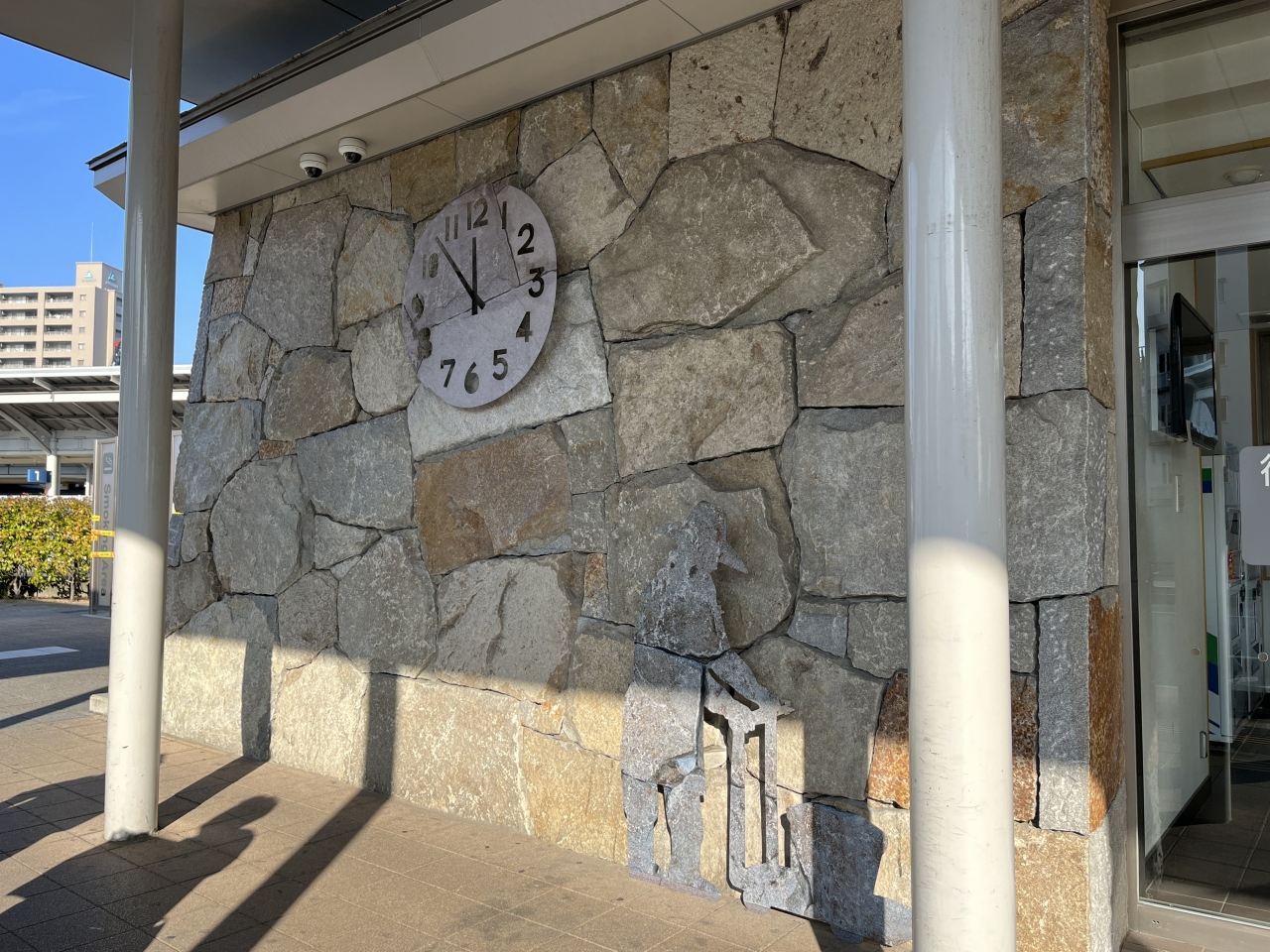 JR高松駅の南側にある、バスの待合所の壁に設けられたアートです。壁の模様に溶け込むように人型があり、ほっこりとした気持ちになりました。JR高松駅のそばには、ほかにもアートが楽しめるスポットがあり、アートで香川を盛り上げようとしている意気込みが感じられました。