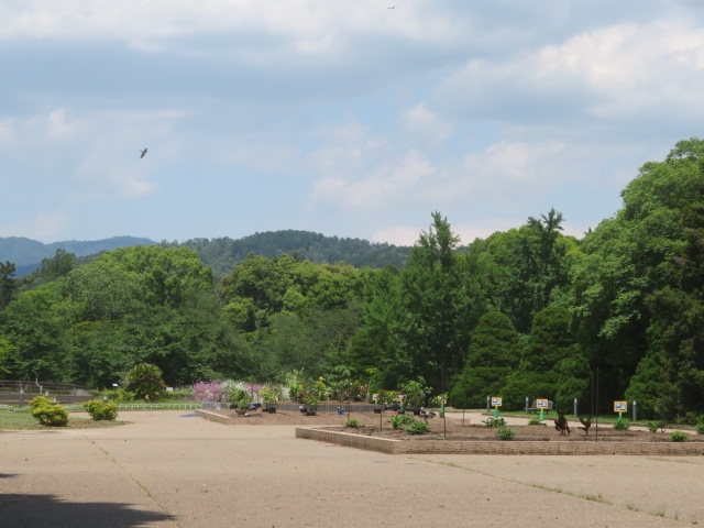 京都植物園に沿った「半木の道」という鴨川沿いの遊歩道があります。この道から植物園にアクセスすることができます。折角ここまで来たなら、この道を通って入りましょう。植物園は、アジサイ園やショウフ園、芝生などもあります。このエリアは京都の自然に触れることができます。