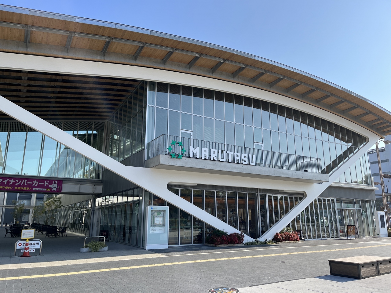丸亀城のそばにある施設です。スターバックスも入っていて、図書館とカフェが一体化した施設のような印象を受けました。観光客にも入りやすく、丸亀城も近いので、お城を見学した後の休憩場所としても活用しやすい場所だと思います。