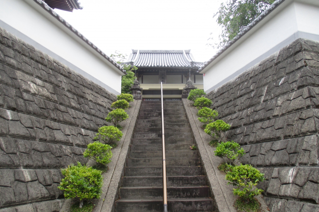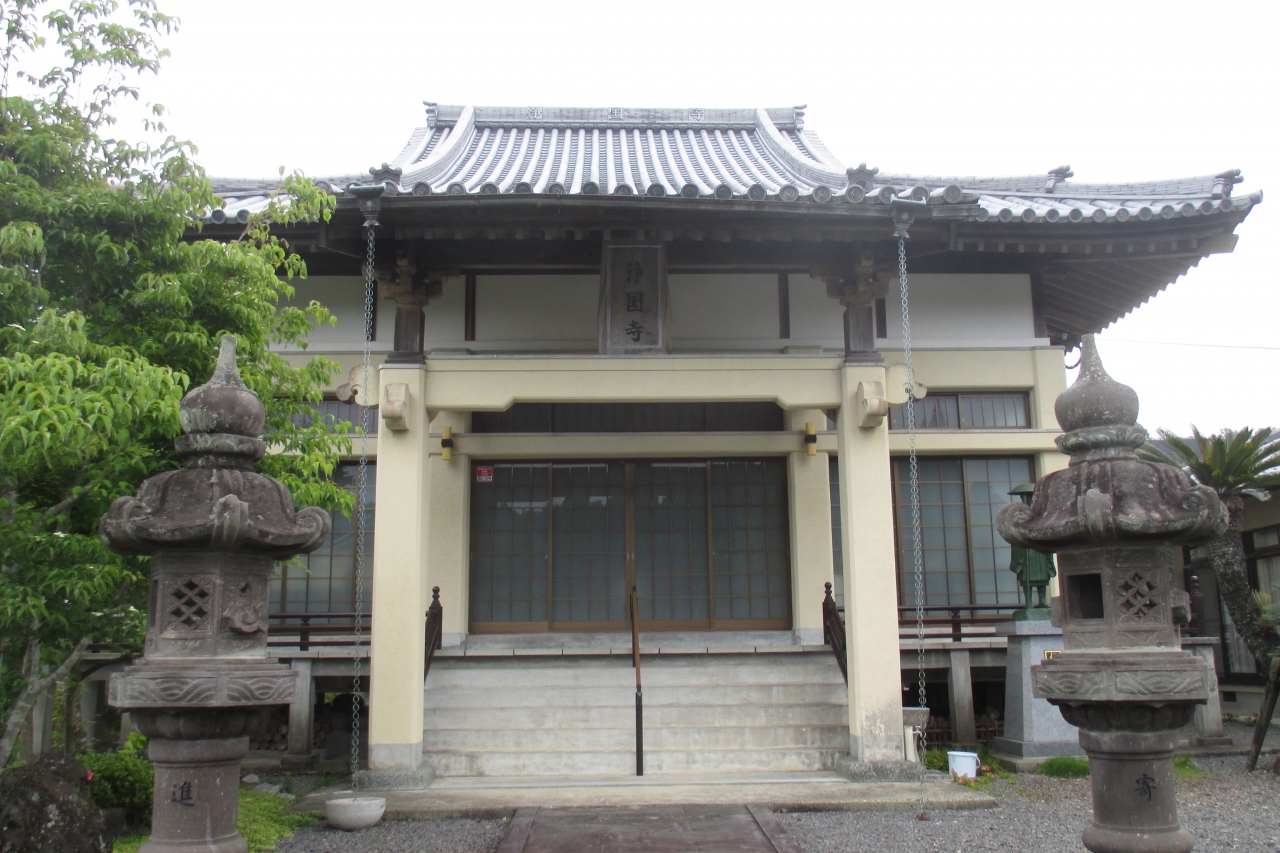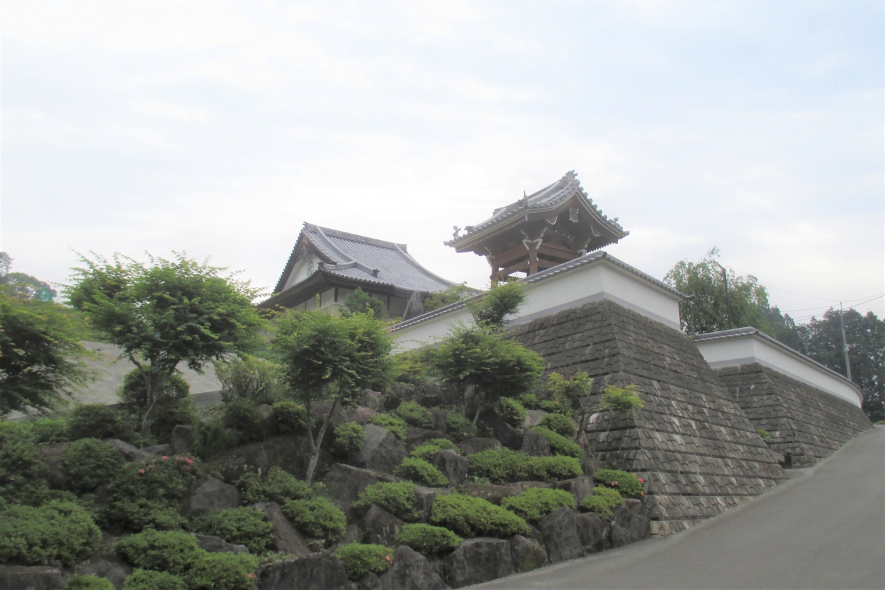 浄国寺に近付いて行くと、大きな石組みの先に石垣風に擁壁された高台にあり、ちょっと、どこかのお城を訪れた様な感じがしました。創建は江戸前期で、現在地には20数年前に移転してきたとのことです。擁壁の間に切れ込んで造られた階段を上ると、新しい鉄筋コンクリート造りの本堂がありました。その前には親鸞聖人の銅像がありました。また、前面にはさらに新しく見える鐘楼がありました。戦争で供出したままとなっていましたが、2009年(平成21年)に梵鐘の寄進を受けて、再建されたそうです。
