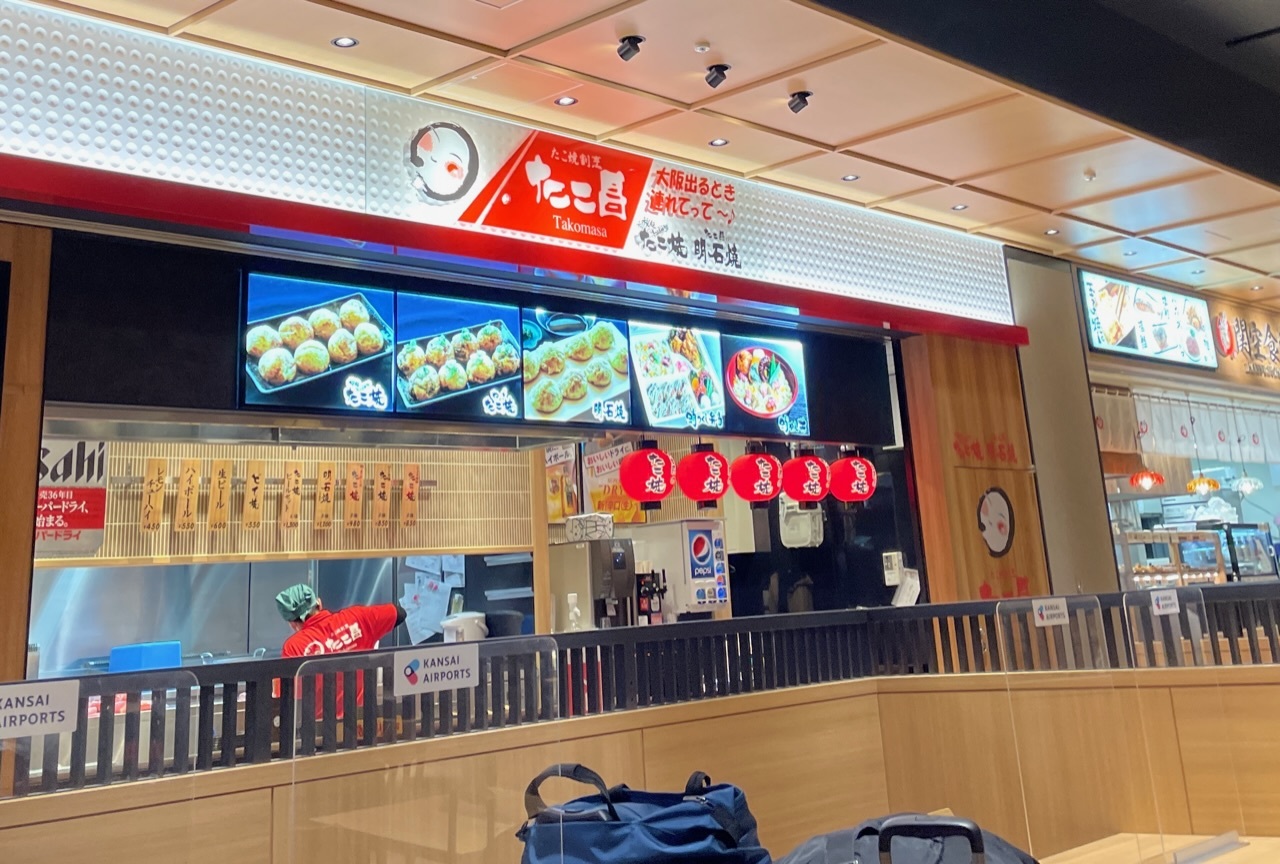 関西空港第二ターミナル国内線の2Fのレストランゾーンにあるたこ焼き屋です。