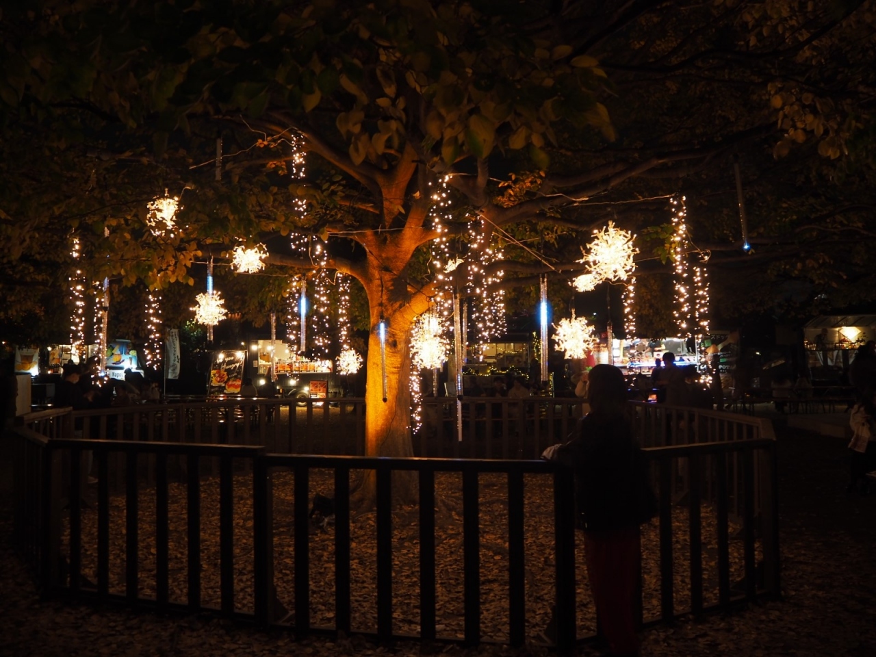 会場にはキラキラと煌めくイルミネーションとともにたくさんのお店、