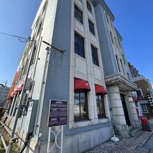 小樽運河沿いにある小樽市指定歴史的建造物です。左右対称の美しい建物でした。現在は中華料理レストランが入っています。窓に飾られているお店の赤いテントがちょうど良いアクセントになって、建物全体がとても可愛らしい印象でした。