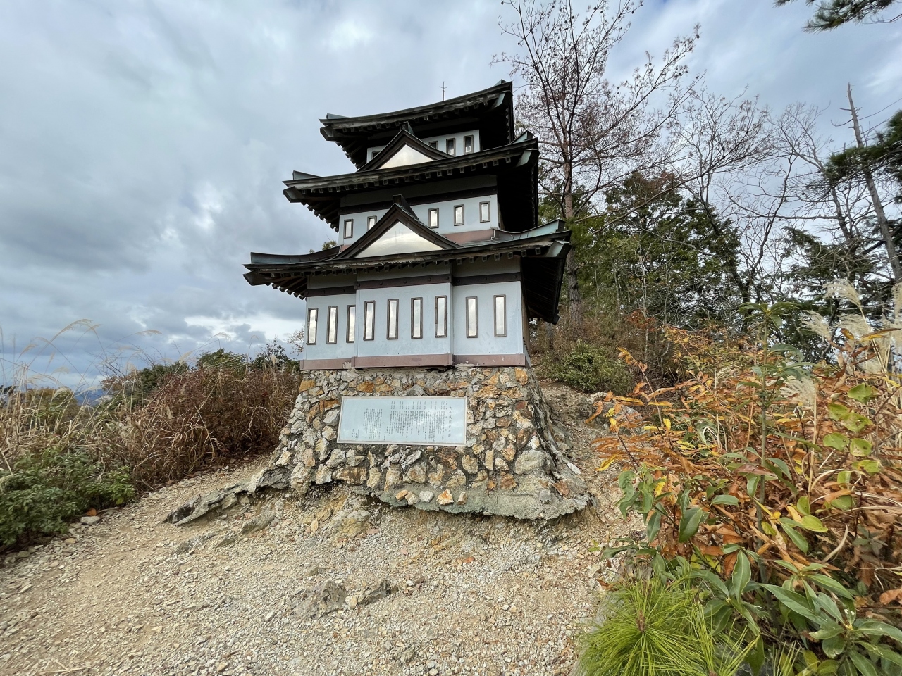 大桑城は美濃の土岐氏の居城。岐阜県山県市にある古城山山頂に造られた城です。古城山の登山ルートは2つあり、麓から登る健脚コースと途中まで車で行けるはじかみコースがあります。私は軟弱者なのではじかみコースで登りました。登山道は階段なども整備されておりよくできています。一部坂が厳しい場所にはロープも張ってありました。登山道の至る所に曲輪跡や石垣跡などの城の名残が見られ、城跡好き登山者には堪らない山です。なお、山頂にはミニチュアの天守もあります。ちょっと笑ってしまいました。