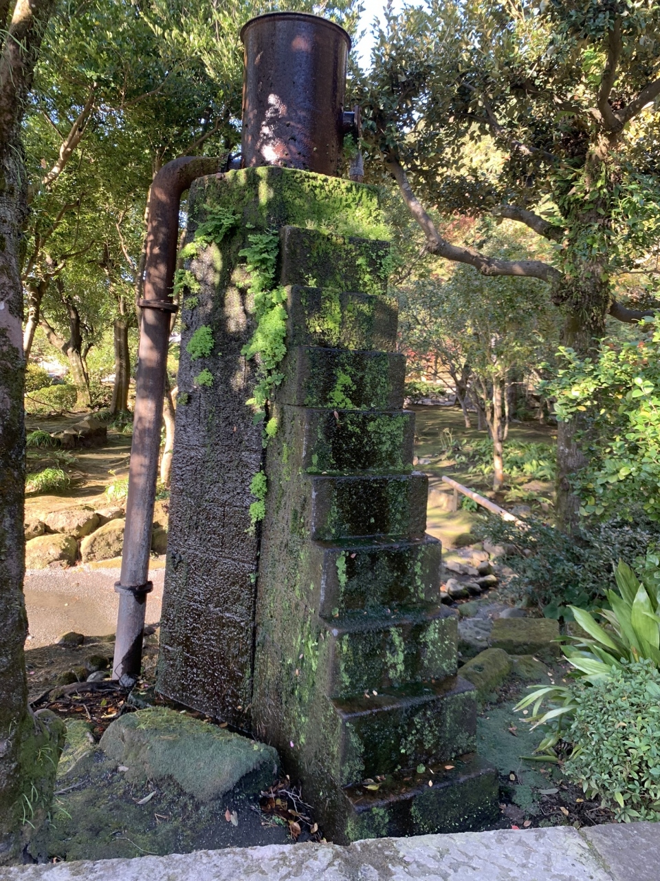 島津家19代光久の時代にできた島津家の別邸です。庭園も広く、中国や琉球の文化の影響を受け、また高枡や水力発電用のダム跡などの遺構も残っており、その技術や知恵も感じることができます。桜島を築山として、また錦江湾を池に見立て、見事な風景でした。