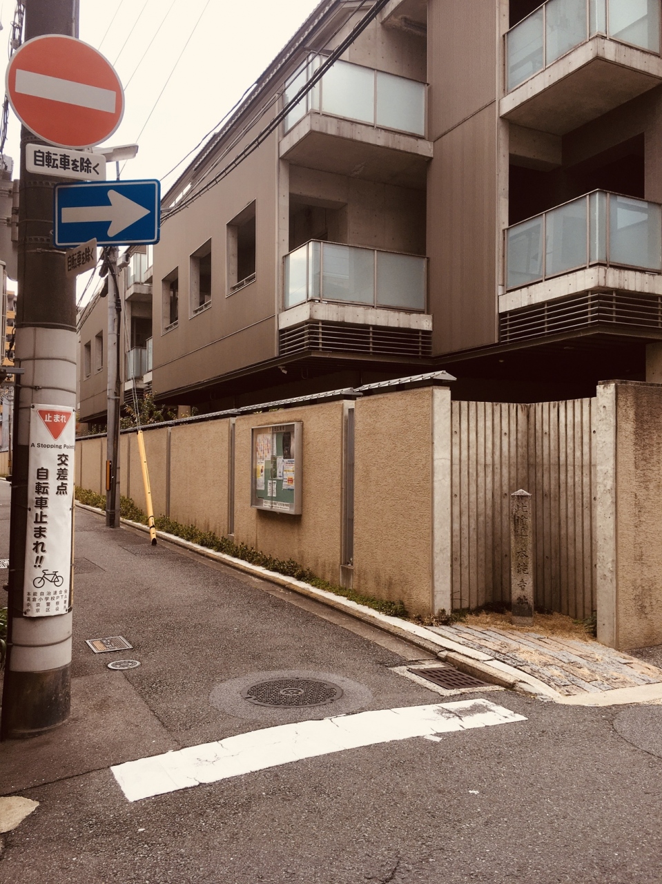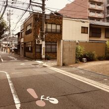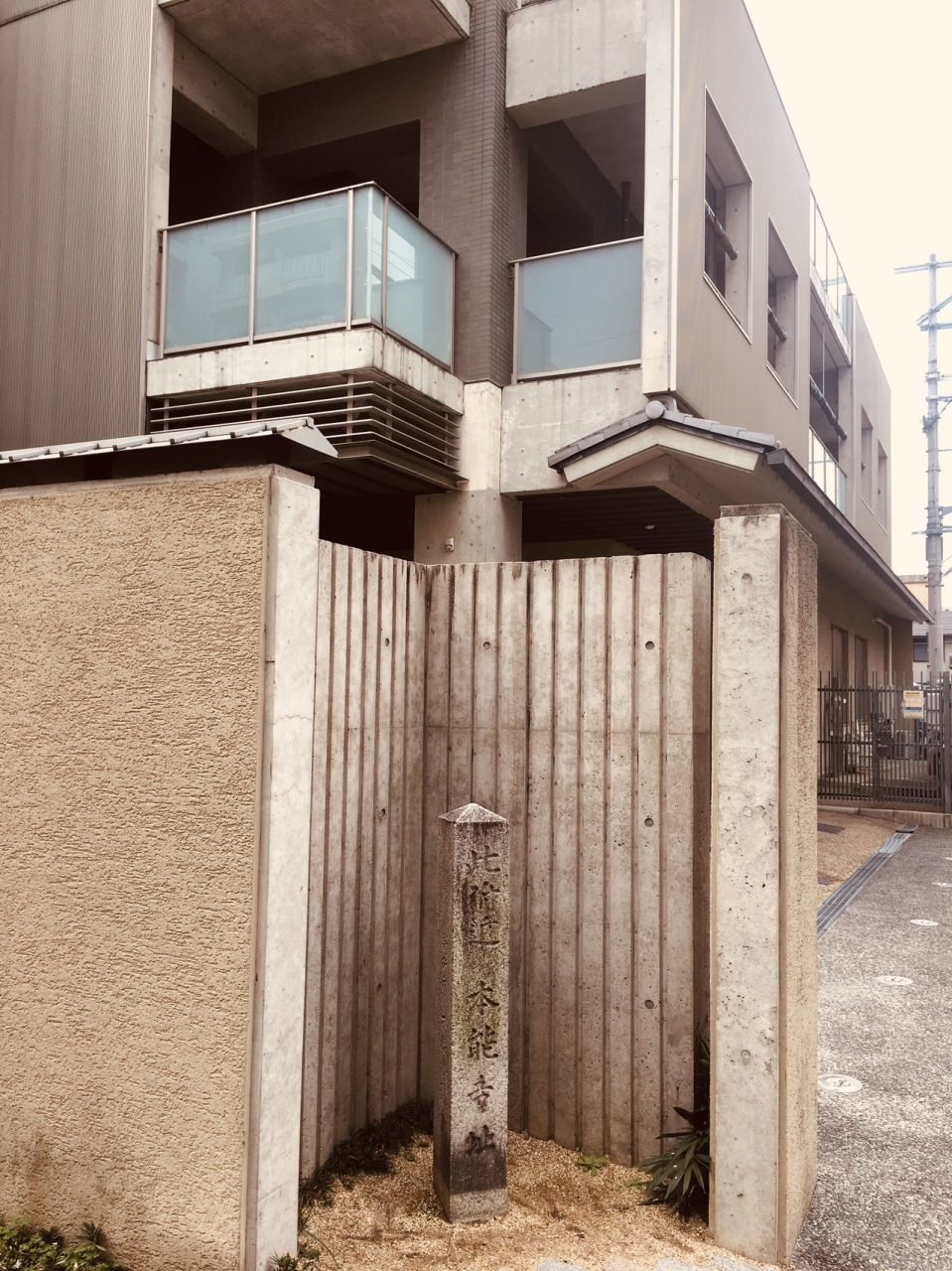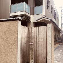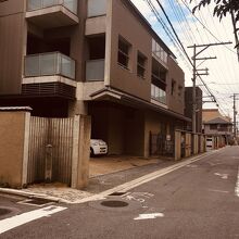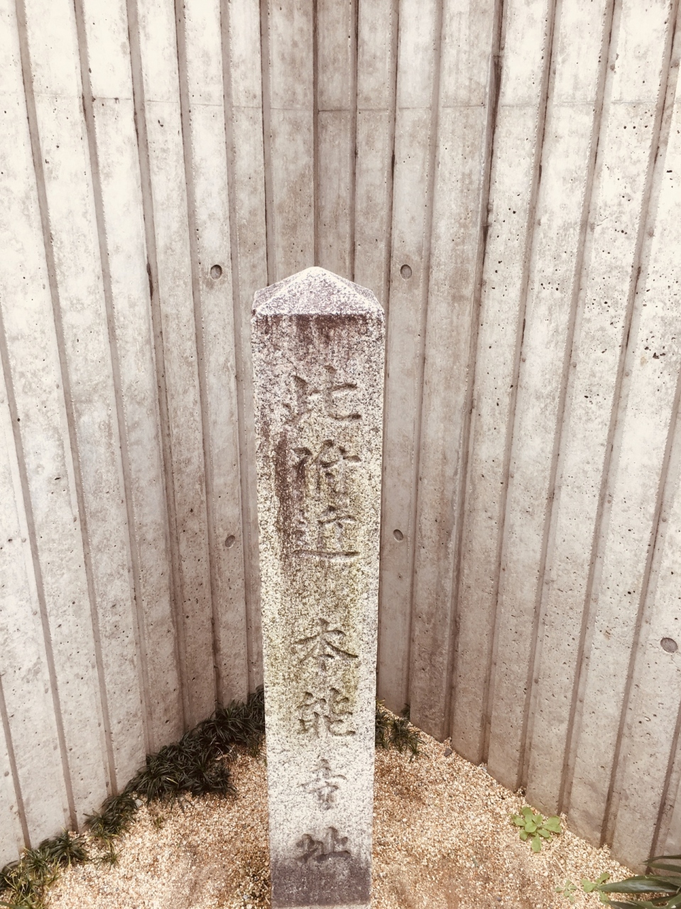 特別擁護老人ホーム等があるクリーム色のビルの横に石碑のみがありました。有名な歴史の舞台としては、小さな石碑に見えました。道の交差点には石碑があり昔大きな寺があったとは思えない雰囲気で、歴史マニアぽい人が数人見学していました。