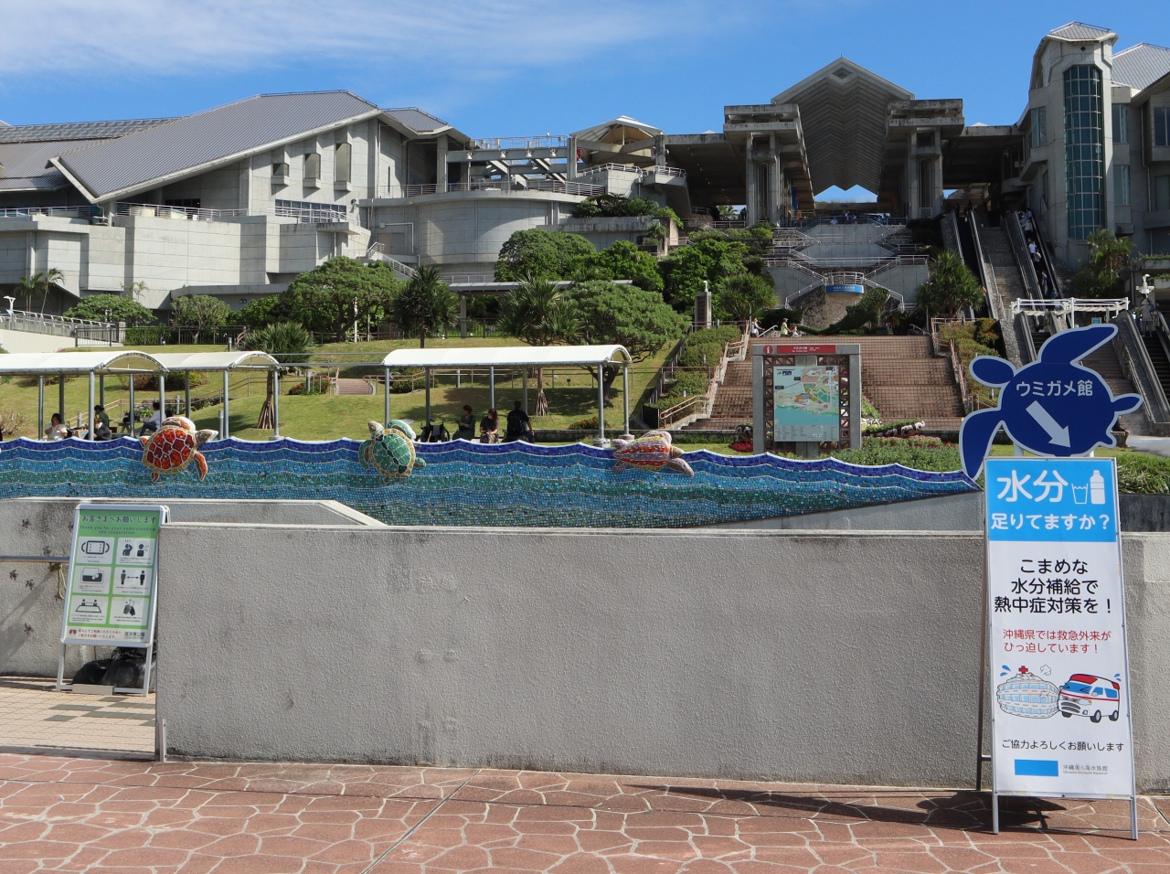 海洋博公園内にあるウミガメ館は無料で見学できます。