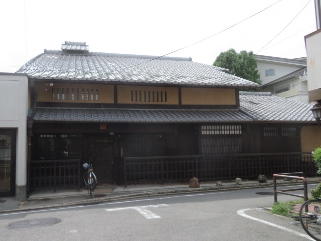 鞍馬口から程なく行った場所にある「万や」の屋号を持つ青物問屋です。登録有形文化財です。焦げ茶の壁に黒い屋根、その上がクリーム色の壁に虫窓、上の屋根には吹き出し口があり、色彩のコントラストも楽しめる町屋です。