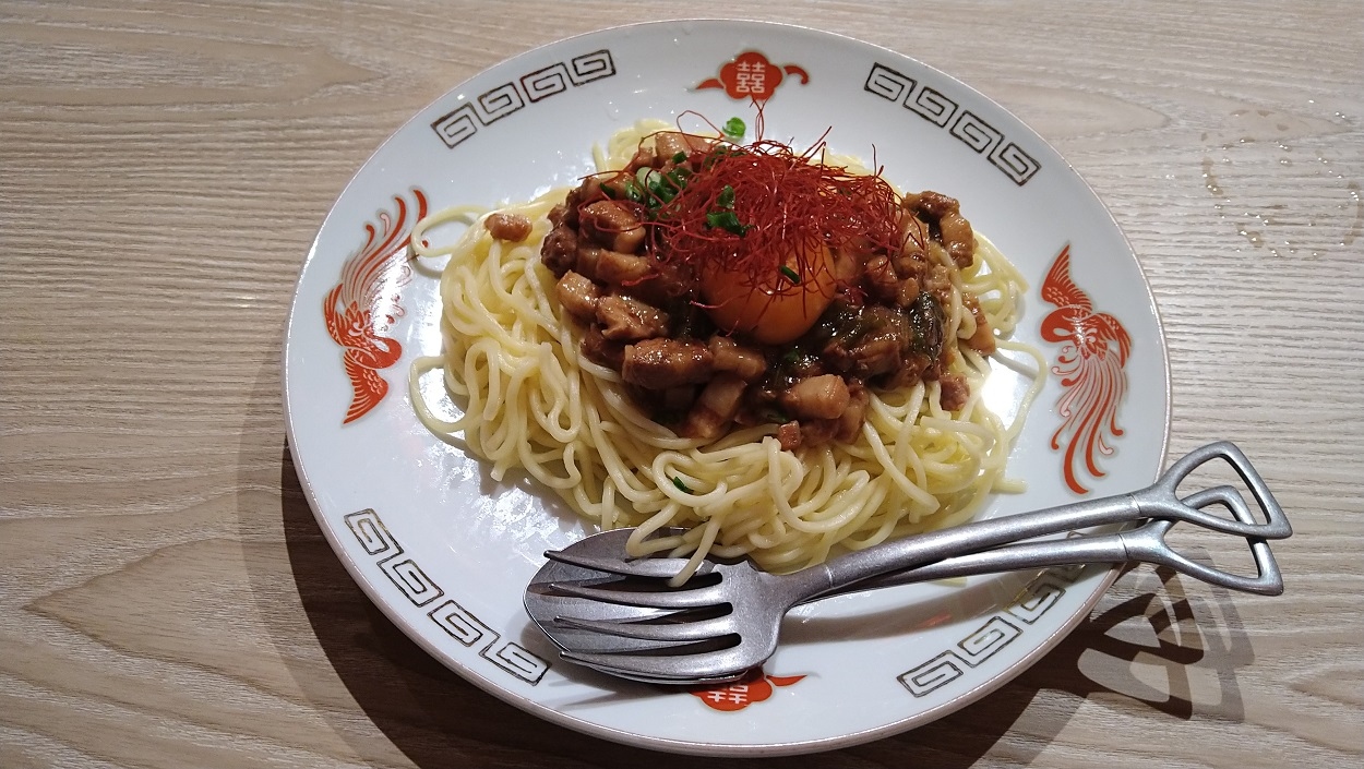 新橋駅日比谷口からすぐ、JR線路の高架下にある中華料理屋さんです。夕食で、ハイボール、鶏焼売2個、ルーロー麺をいただきました。ルーロー麺は煮込んだ豚肉と生卵が麺の上にのった汁なしの麺料理です。味付けが良く、豚肉も柔らかくて美味しかったです。