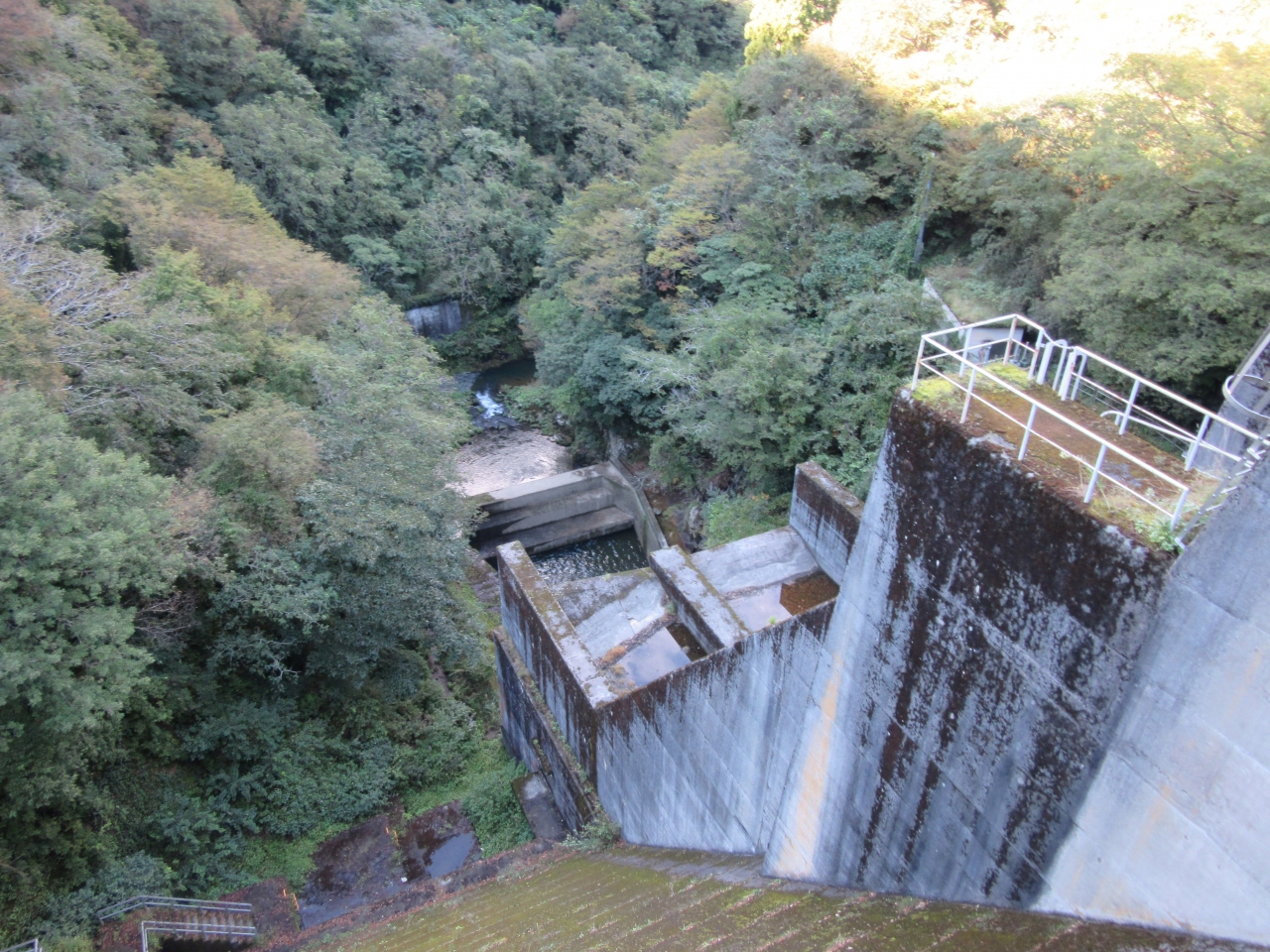 我谷ダムは1965年(昭和40年)竣工の重力式コンクリートダム