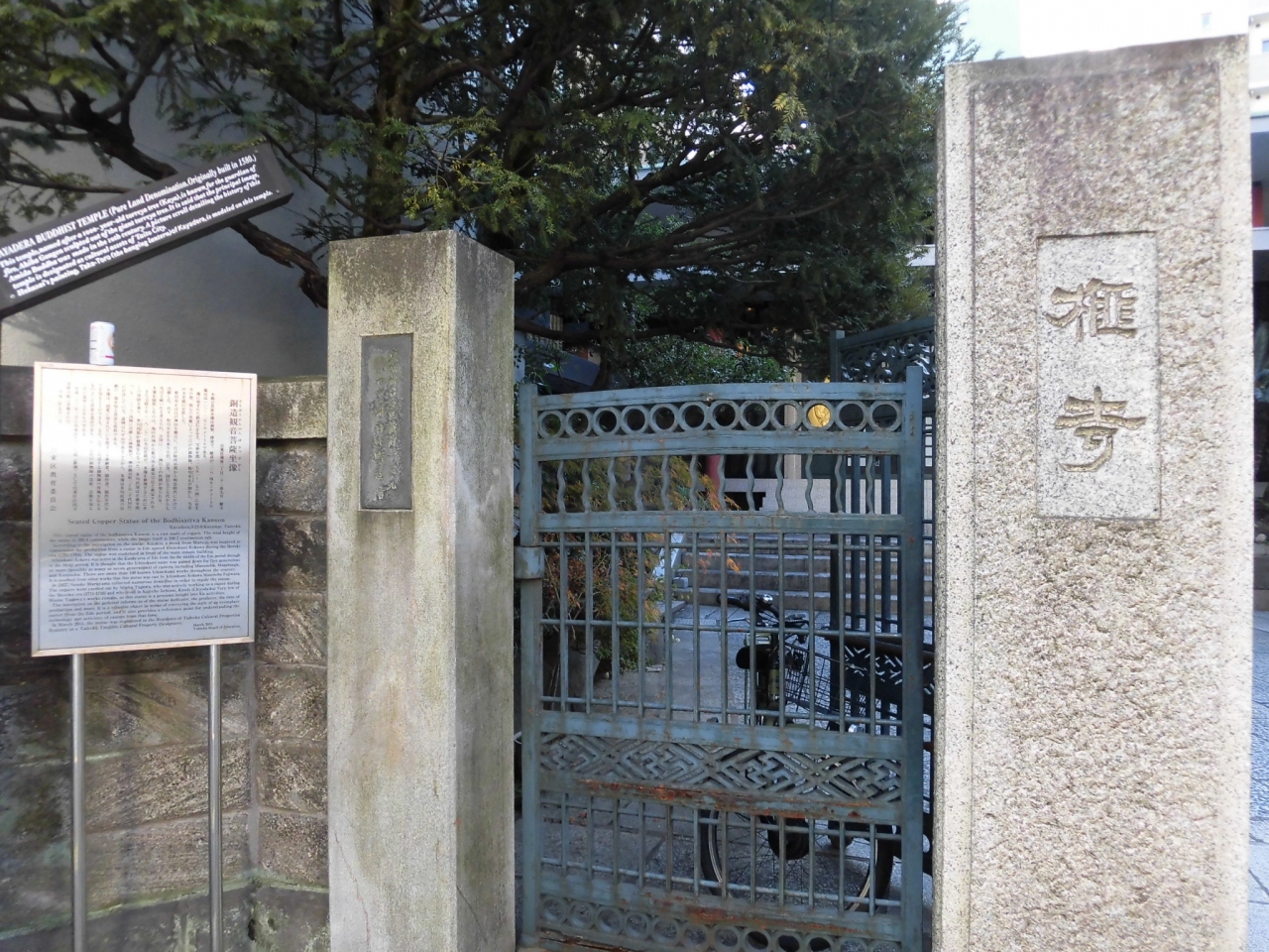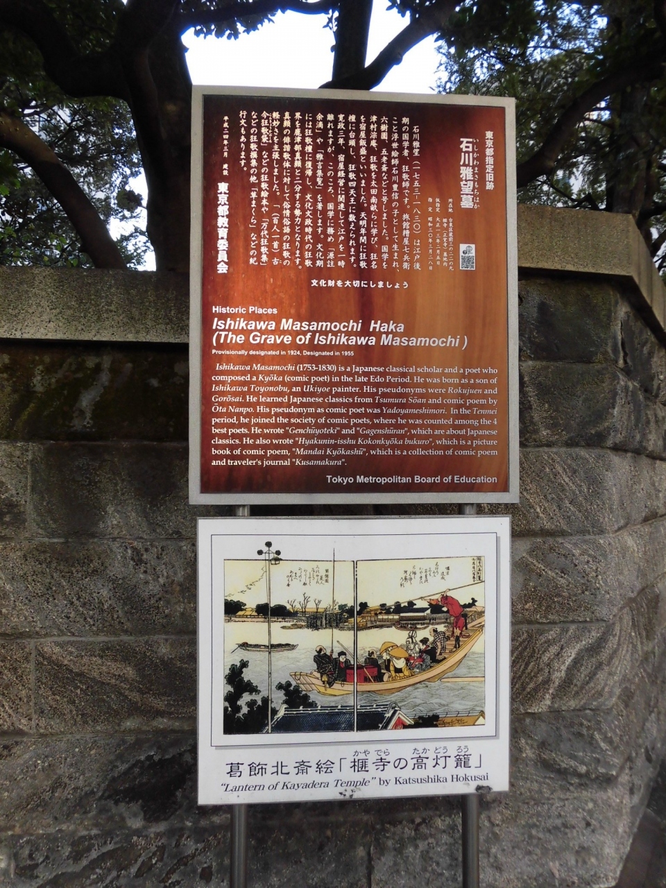 榧寺は隅田川の厩橋近く、春日通り沿いにあるので、場所は見つけやすいと思います。銅造観音菩薩坐像説明や江戸時代の国学者、石川雅望墓、葛飾北斎の高灯篭浮世絵などの案内板も立てられていて、江戸文化や歴史が好きな人には面白いお寺だと思います。