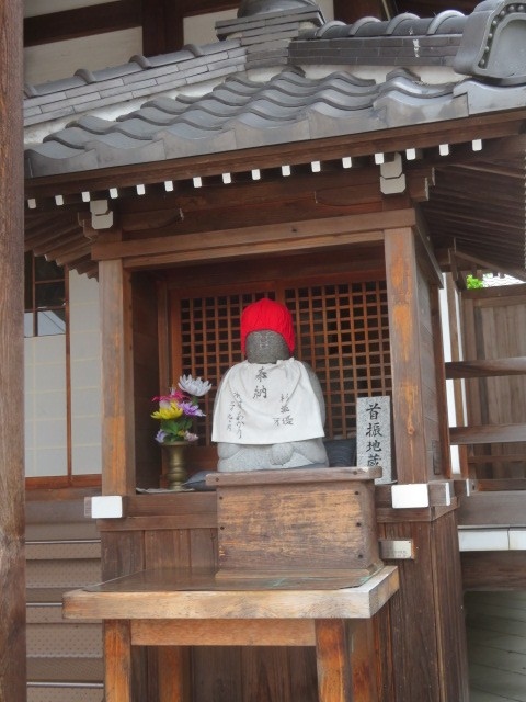 清水寺の仁王門のすぐ下に、地蔵院善光寺堂があります。そこにおられるのが首振り地蔵様です。赤い帽子に赤いヨダレかけがトレードマークとなっていたみたいですが、コロナの流行下で、マスク代わりなのかヨダレかけが白になっていました。お顔だちが何とも可愛らしいです。