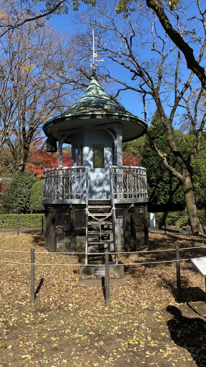 江戸東京たてもの園の東ゾーンの万世橋交番の前にあります。大正14年台東区東上野にあったものを移築のために高さを縮めて保存してあります。実際は約23,6mの高さがあったみたいで昭和45年まで実際に使用してたそうです。。