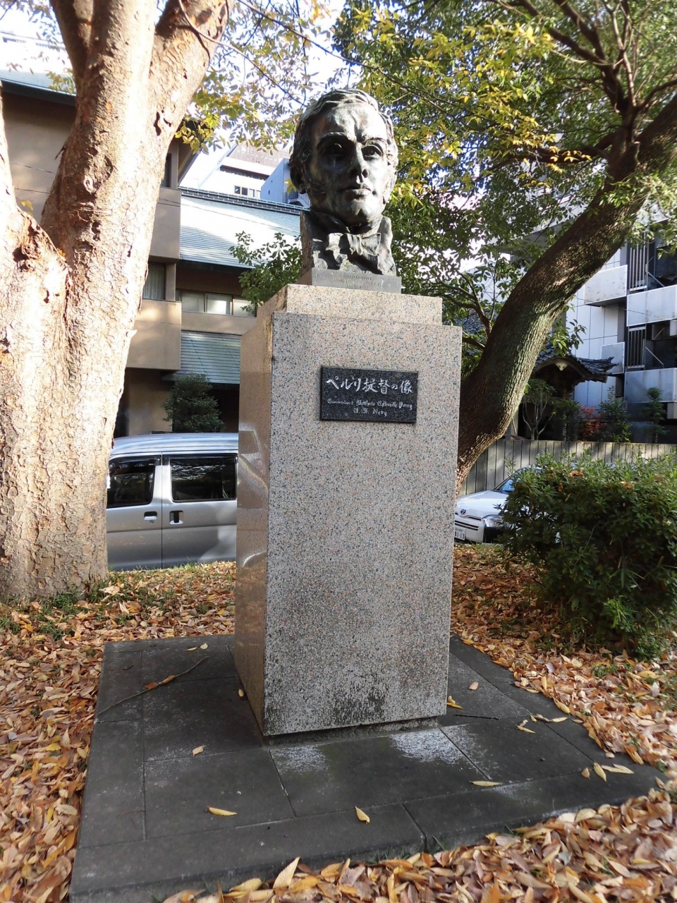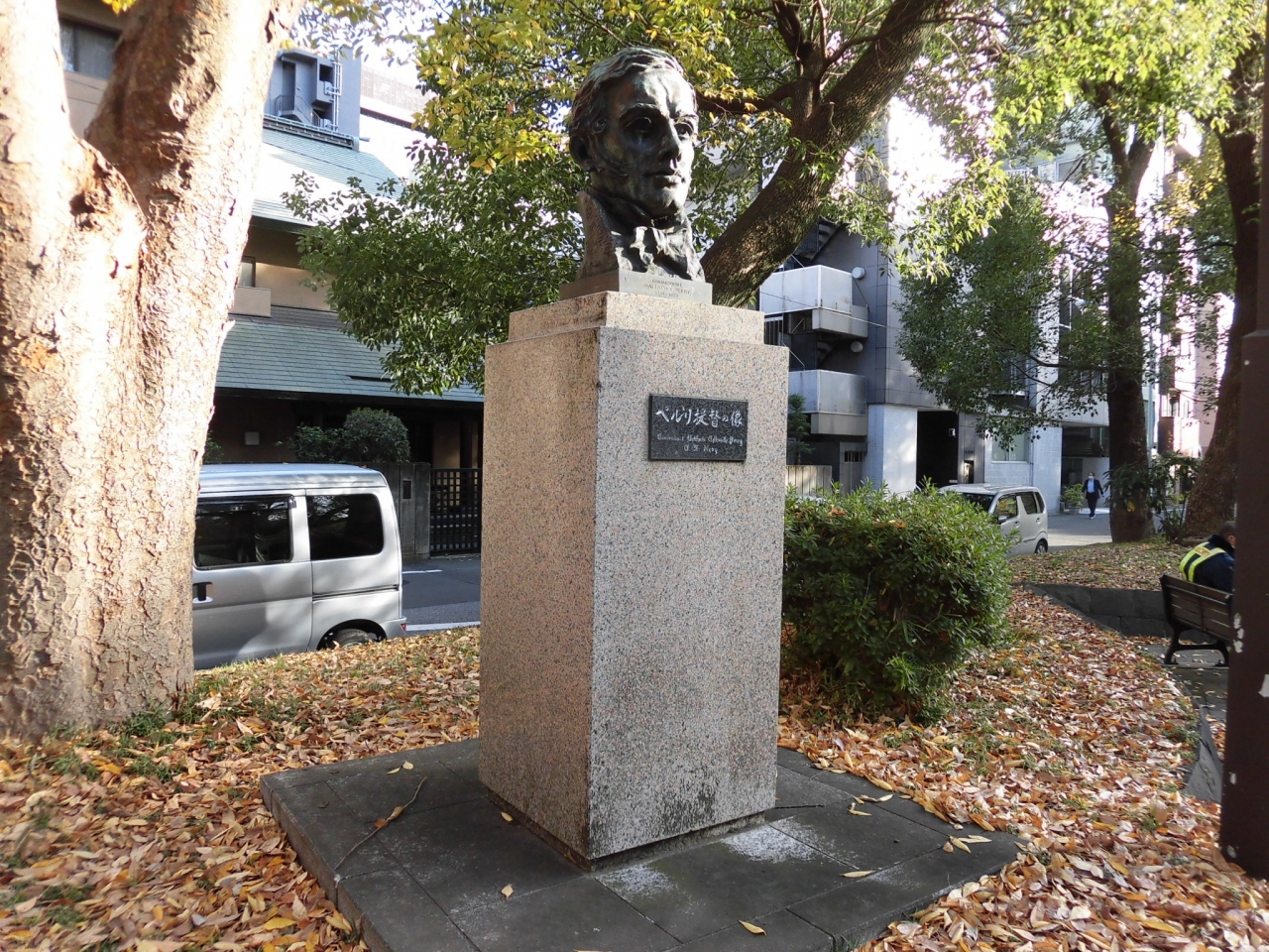 港区にある芝増上寺の手前、芝公園緑地の中に、胸像が立てられていたので立ち寄ってみました。江戸末期、アメリカから艦隊を率いて、日本に開国を迫ったペリー提督の胸像でした。胸像なので上半身だけでしたが、おそらく軍服を着て日本に上陸した姿は、当時の徳川の武士たちは驚いたと思います。徳川家ゆかりの増上寺のそばにあるのも、何かの縁なのかもしれないと思いました。