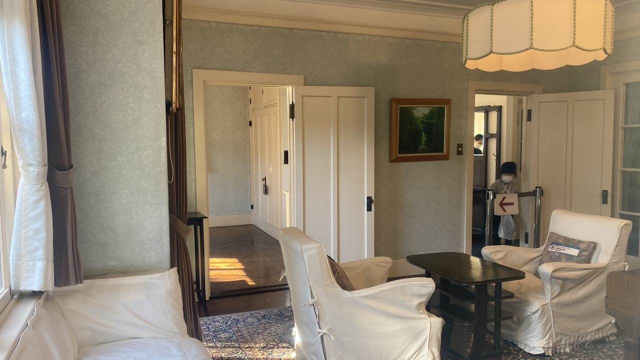 江戸東京たてもの園の中ゾーンにある施設です。一見別荘のような建物ですが、たてもの園の中では珍しい平屋造りの完全洋風建築です。戦後の高度成長期の時代の家電や家具などが室内に入って見学することができます。