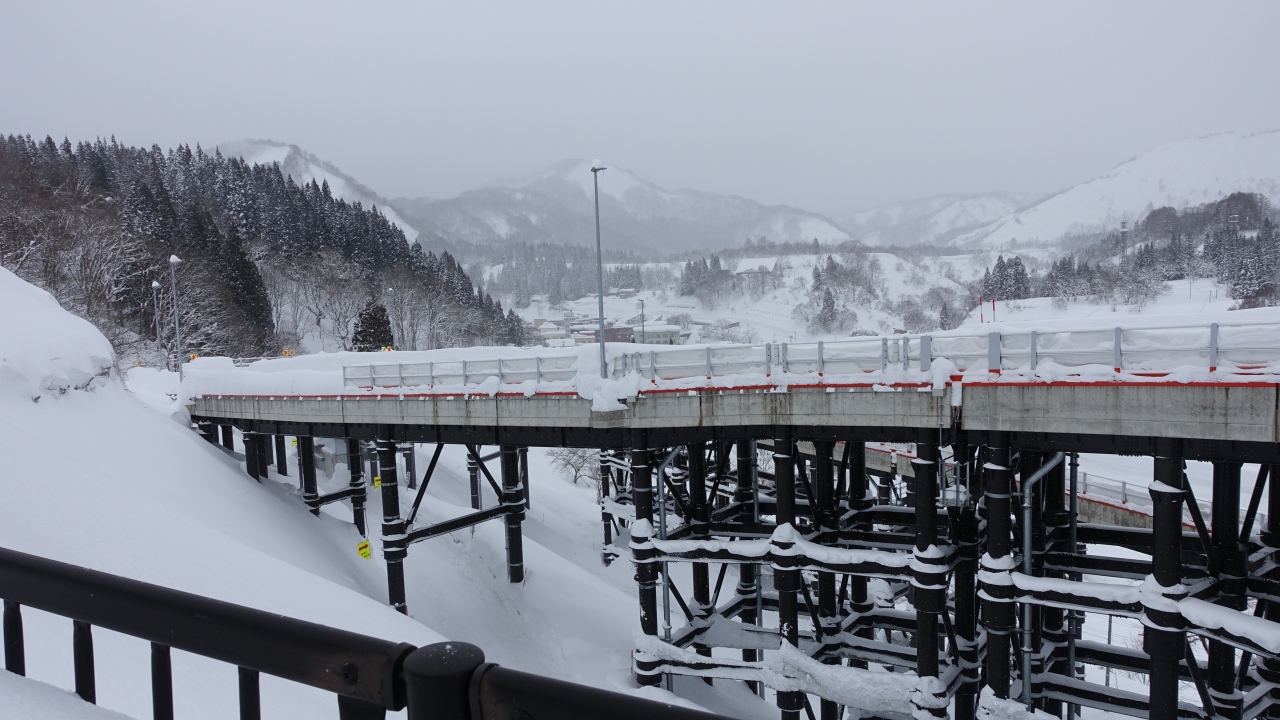冬季は2~3mの雪の壁の中を走り沿線住民の利用者も多い。肘折温泉入口近くの巨大なループ橋「肘折希望(のぞみ)大橋」付近からは、月山と肘折温泉の美しい風景を見渡せる。