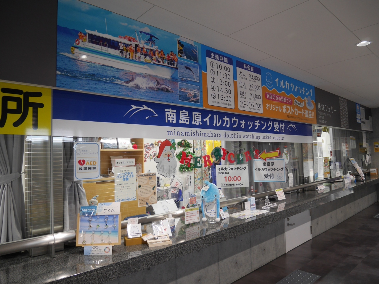 イルカウォッチングツアーは複数の会社が運航していますが、私たちが予約していた「南島原イルカウォッチング」の乗船券は、ターミナルビル1階の窓口で受け取ります。