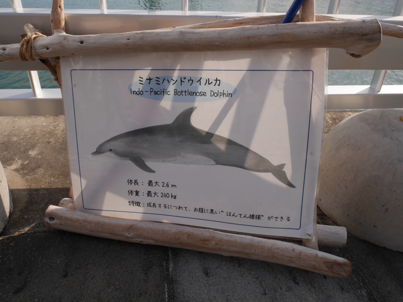 ここに住むイルカは「ミナミハンドウイルカ」と言う種類で体長は最大2.6m。
