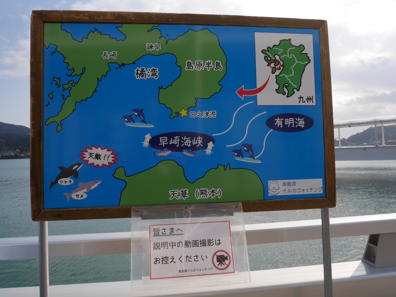 スタッフさんの説明によると、有明海の入口に位置している「早崎海峡」は、イルカが定住するための3つの要素に恵まれているとのこと。