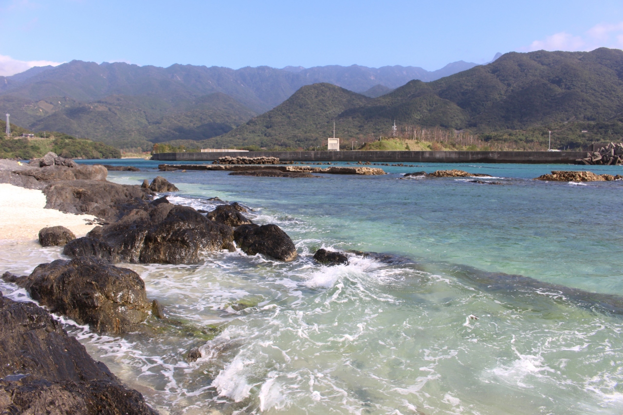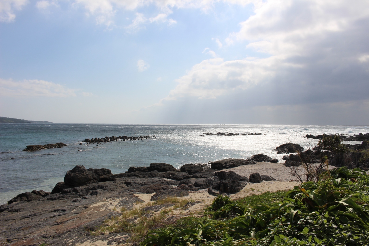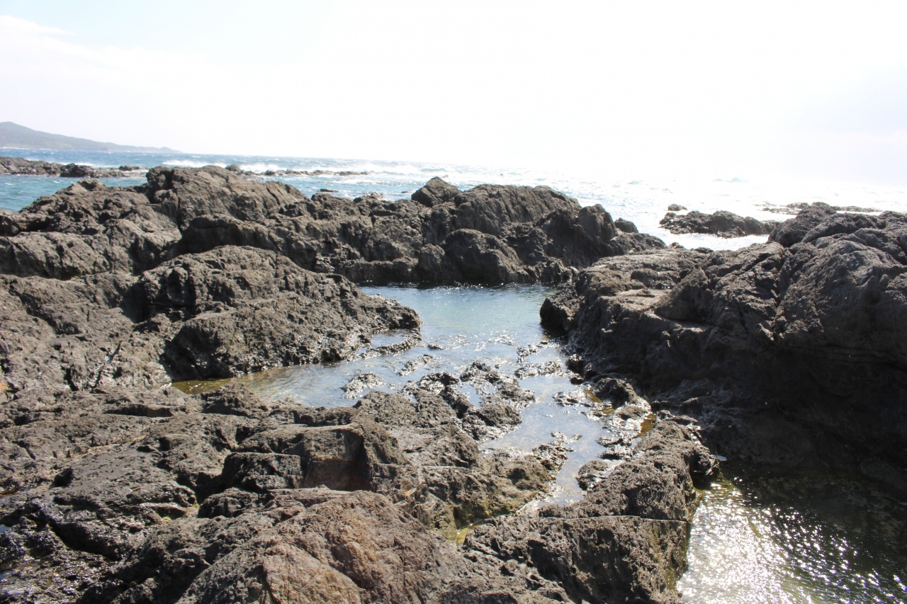 島の南西部、栗生川の河口付近の海岸に広がるのが「塚崎タイドプール」。天然の岩で仕切られ、潮が引いた時に現れる潮だまり(タイドプール)で様々な熱帯魚が観察できるそうです。11月はさすがに泳ぐのは無理なので陸の上から眺めるにとどめましたがきれいな海でした。夏に来てシュノーケリングしてみたいです。