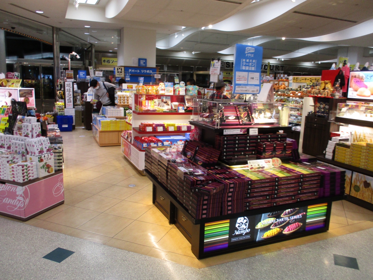 デパートリウボウは那覇空港出発階のお土産屋さんの一角にあります。石垣空港に比べると那覇空港のお土産エリアは広かったです。どこのお店に訪問するか考えるだけでひと苦労でしたが、そんな中からこちらのお店に訪問しました。那覇土産定番の紅芋タルトや紅芋ケーキを発見しました。スタッフいち押しの紙も貼ってあったので購入しました。