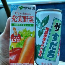 入り口ですだちジュース、野菜ジュース、オロナミンC等も頂けます。