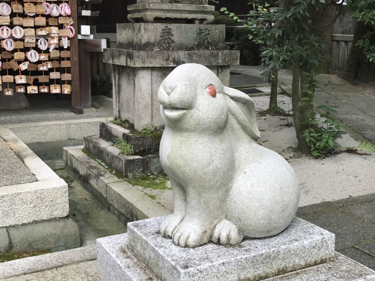 狛犬の代わりに「うさぎ」がお出迎えしてくれるかわいい神社で、縁結びのご利益もあるようです。おみくじも「うさぎ」形の陶器の中に入っているので、おみやげにもなりますね(中身がどうなのかはわからないので、結果の保証はできませんが…)