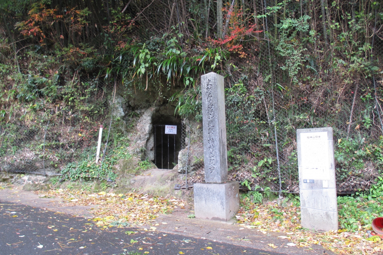 ぎんざんカートの最深部の乗場「高橋家住宅」(龍源寺間歩からの乗車所)の近くに、福神山間歩がありました。中には入れませんが、ちょっと覗き込むことは出来ます。入口はやっと1人が入れるくらいの狭さですが、ここは銀の産出量が多く、石見銀山で最も有力な坑道の1つだったとのことです。少し横に、小さな穴がありましたが、空気孔だそうです。