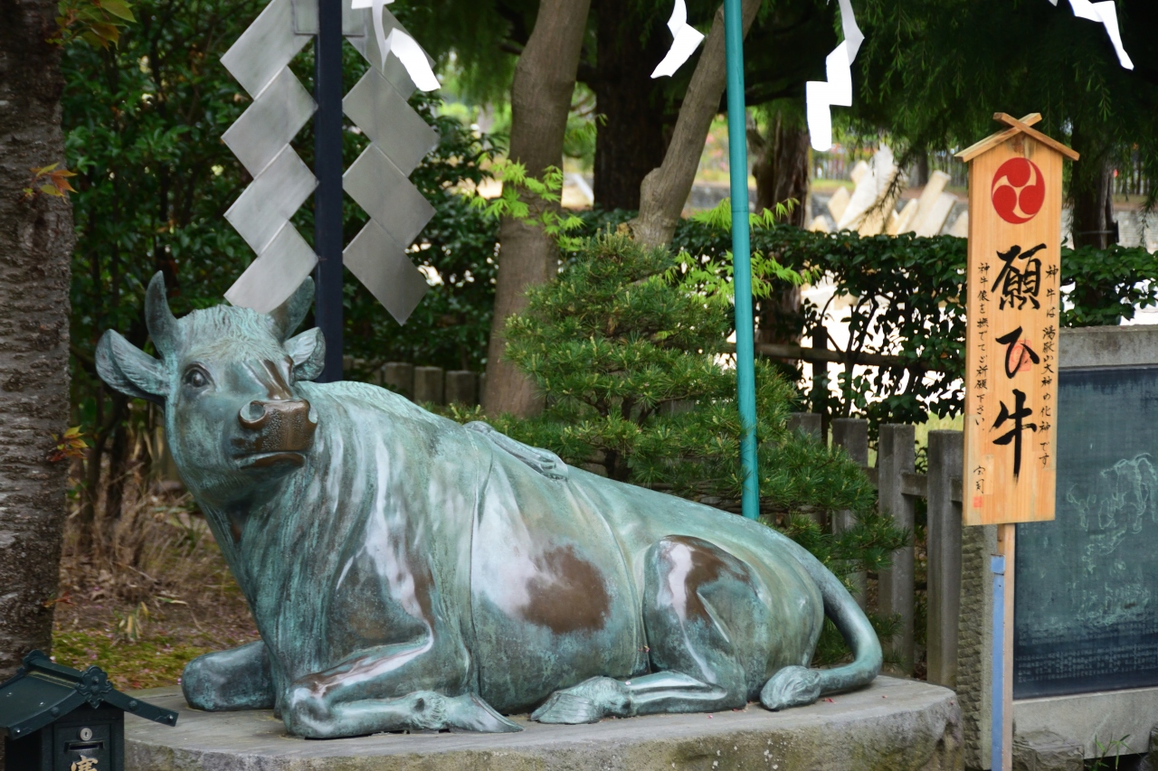 山形市内にある神社です。文翔館の隣にある神社です。小さな神社でお守りの販売や御朱印の提供は行っていませんが、参拝者は多めです。願い牛が横たわる神社で、願いを届けるお牛様として触って祈願すれば願い事が叶うとされています。