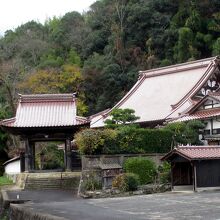 赤い石州瓦の大屋根が印象的なお寺さんです。