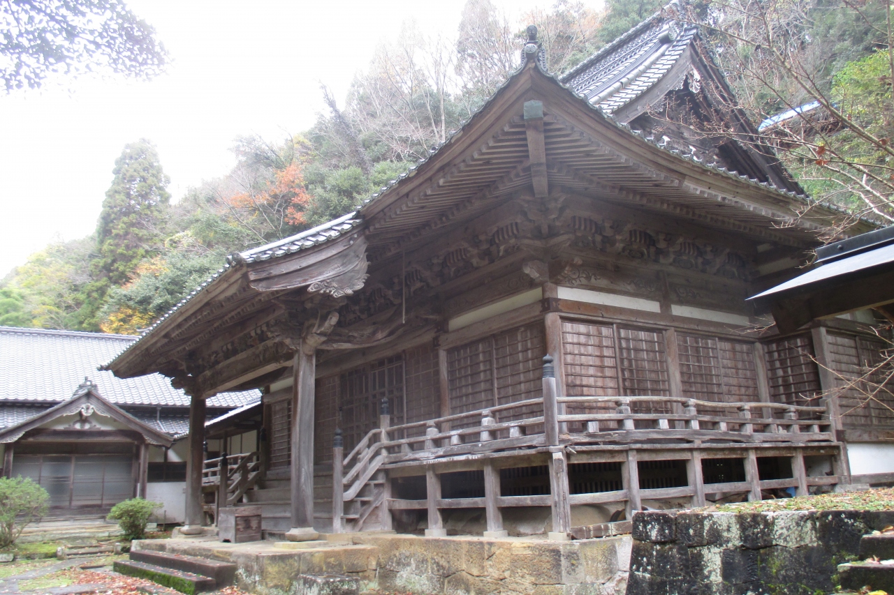 大森の町並みを貫く通りから、銀山街道の1つで勝源寺の前を通る坂道を100mくらい進んだところに勝源寺がありました。創建は1601年(慶長6年)で、初代奉行の大久保長安らが旦那役となり創建されたとのことです。奉行や代官の菩提寺となっていて、豪商のお墓もあるとのことです。近付くと、大きな山門がありました。1772年(明和9年)に築造された鐘楼門です。高さは10mだそうですが、その前に石段がありますから、もっと大きく感じます。精巧な彫刻が施されていました。なお、山号は即応山で、浄土宗のお寺さんです。