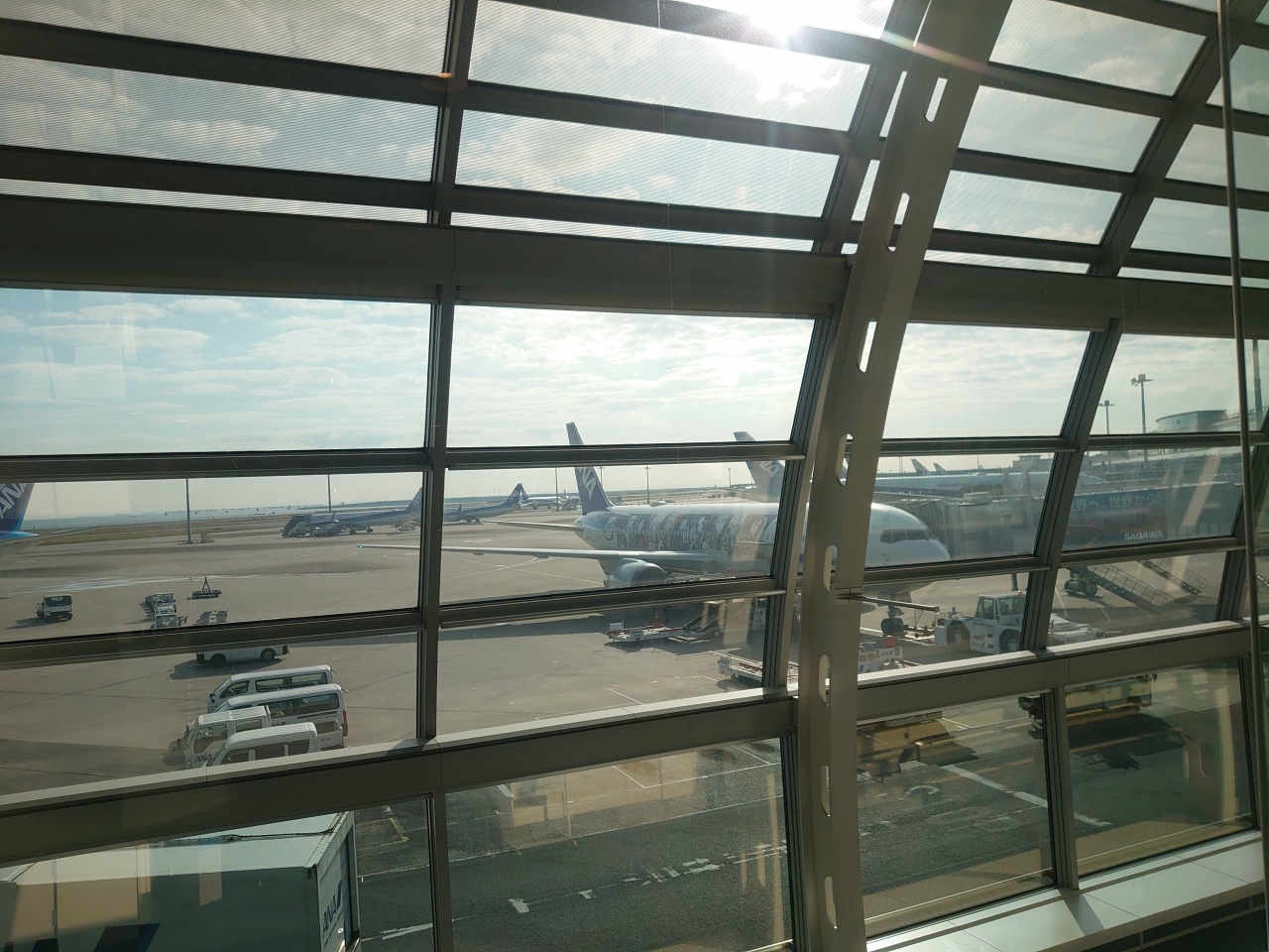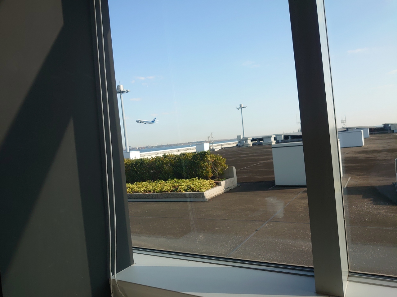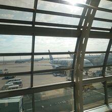 飛行機が駐機しているのを眺められ、明るくて開放的でよい雰囲気です。