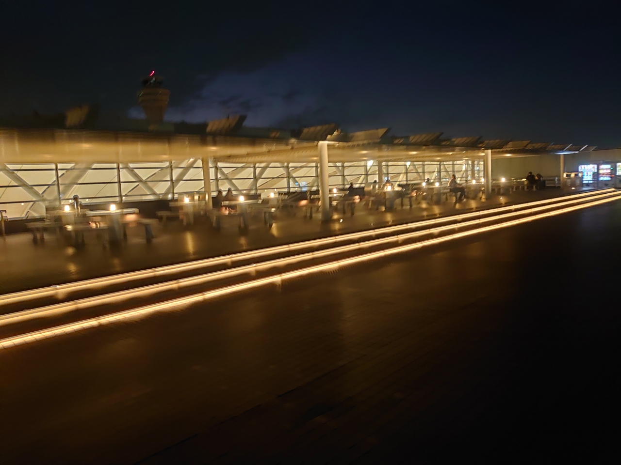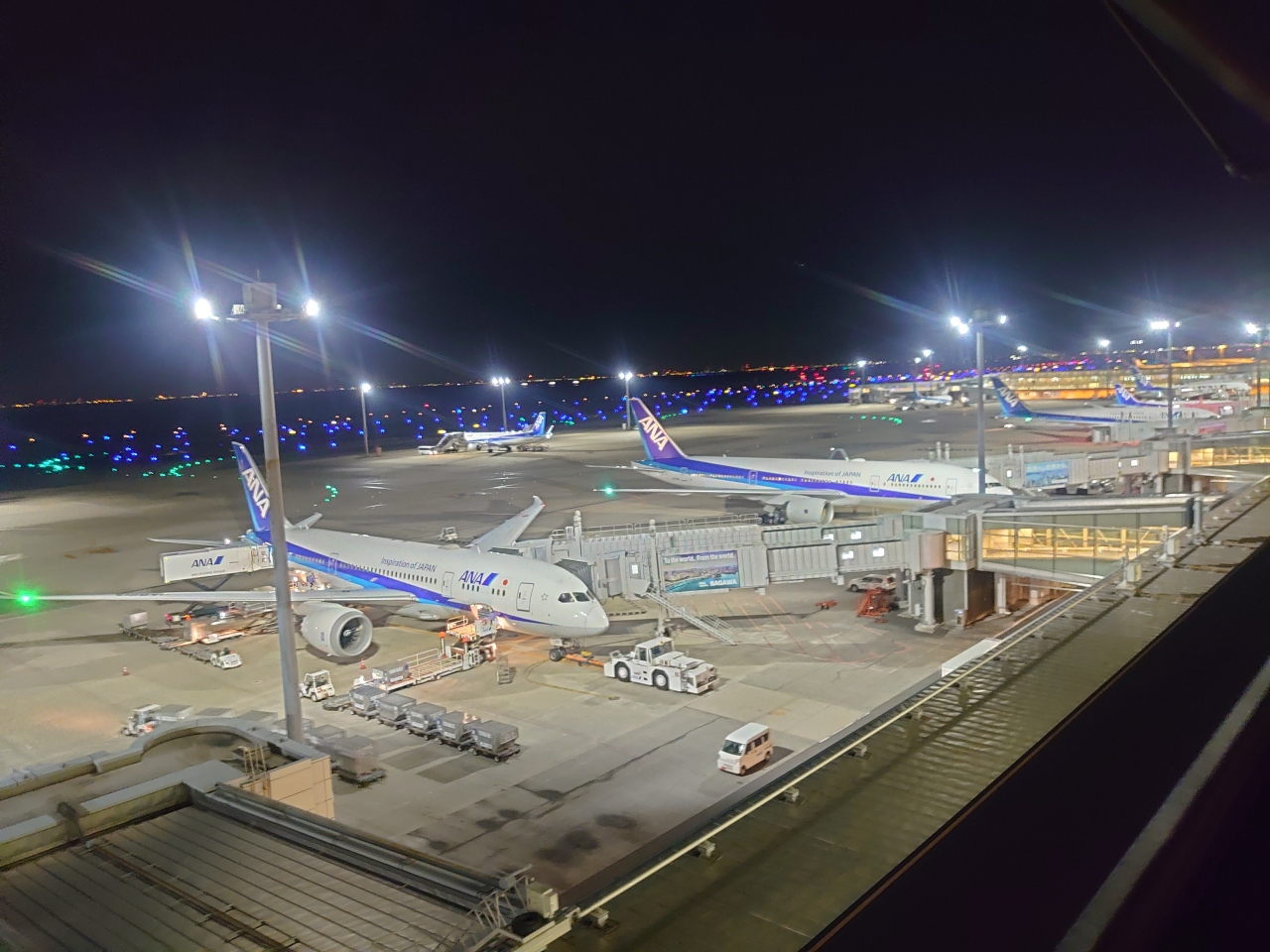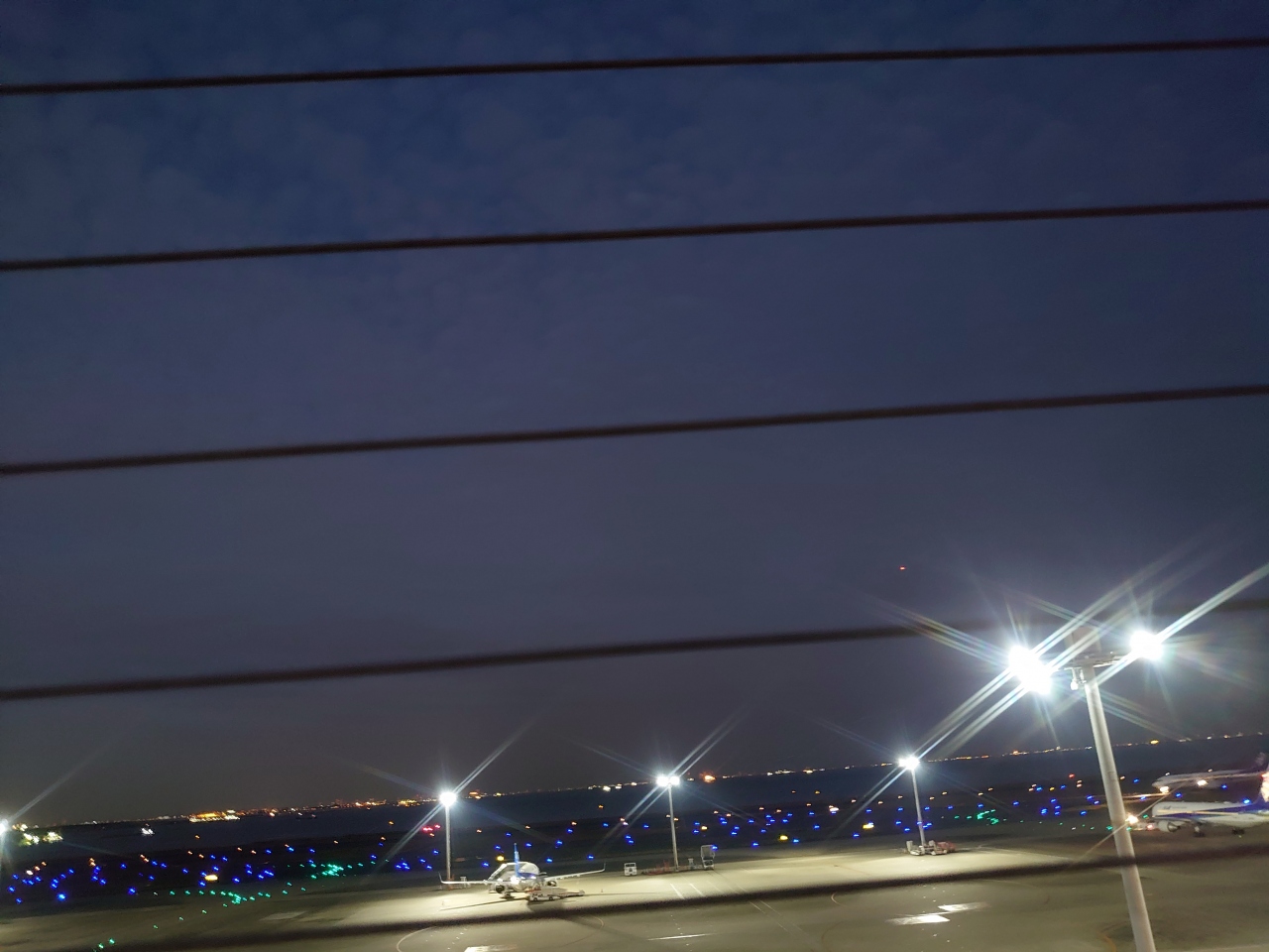 夜の羽田空港第2展望デッキはライトアップもされていて幻想的な空間になっています。