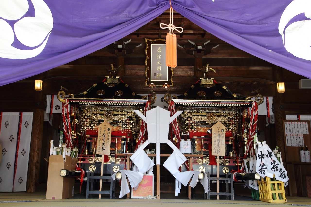 唐津くんちが有名なので大きな神社かな、と思って訪問しましたが、それほど小ぢんまりとした神社でした。拝殿と本殿の他にも幾つか摂社や末社が祀られていましたが、一回りするだけなら10分も掛かりません。社殿もそれほど古いものではありませんでした。私が訪問したのは唐津くんちの宵山の当日だったので参道や境内は屋台が所せましと並んでいましたが、普段は地元の方が訪れる静かな神社なのだろうと思います。